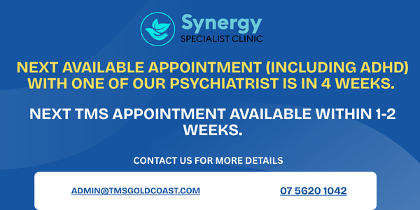 At Synergy Specialist Clinic, we are dedicated to delivering compassionate and evidence-based mental health care to help individuals regain confidence, stability, and emotional wellbeing. With a multidisciplinary team led by highly qualified experts, we offer access to a psychiatrist Gold Coast residents can trust for accurate diagnosis and personalised treatment plans. Whether you are seeking support for anxiety, depression, ADHD, PTSD, or complex mental health concerns, our professionals work collaboratively to ensure the highest standard of care. Known as one of the best psychiatrist Gold Coast options, our clinic combines advanced clinical expertise with a deeply supportive approach, ensuring every patient feels heard and respected throughout their healing journey. We also provide psychological therapy with a skilled Gold Coast psychologist team committed to fostering positive change. At Synergy Specialist Clinic, your mental health matters — and we are here to support you every step of the way.
